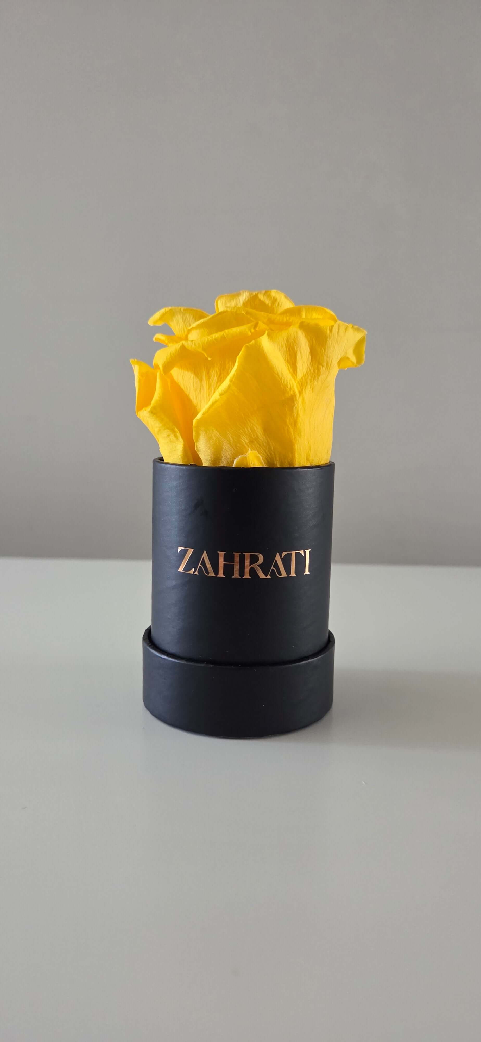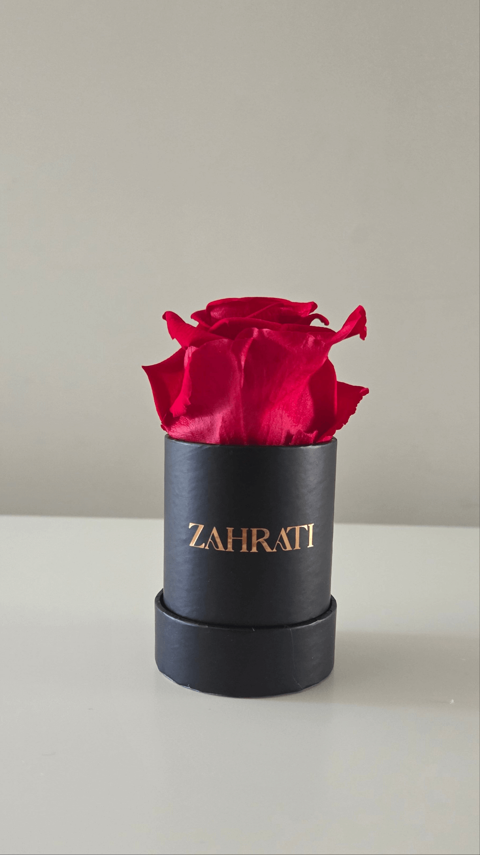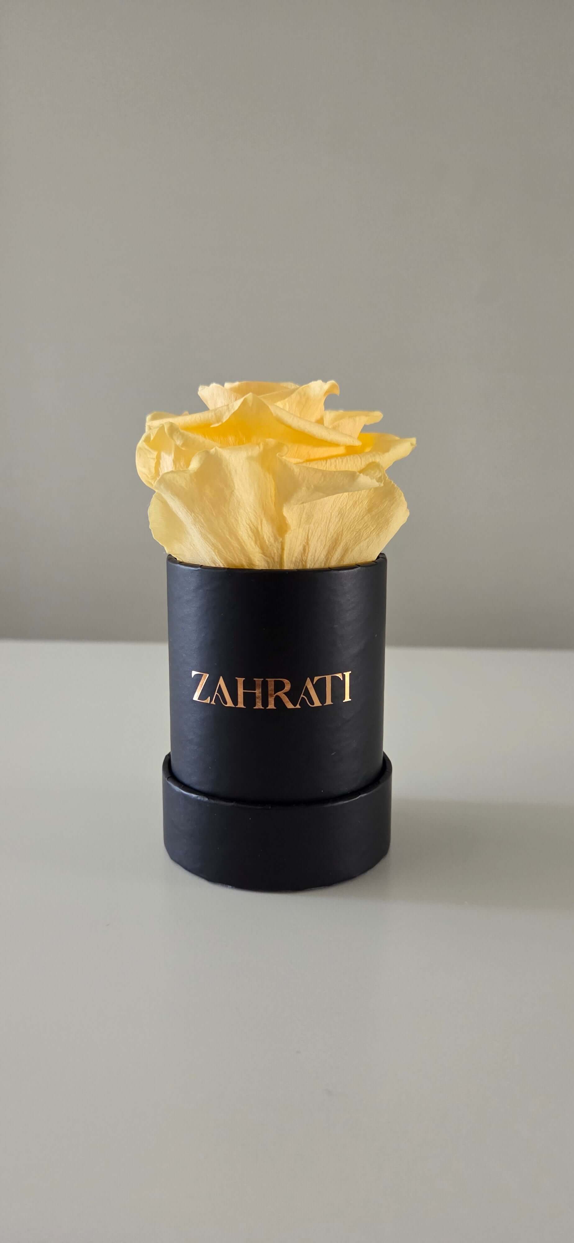 Unveil the beauty of the Jasmin arrangement, featuring a single eternal rose preserved to perfection, ensuring it maintains its vibrant charm for over a year with no maintenance required. This exquisite rose is elegantly displayed in a high-quality cardboard box, adding sophistication and luxury to any setting or occasion.